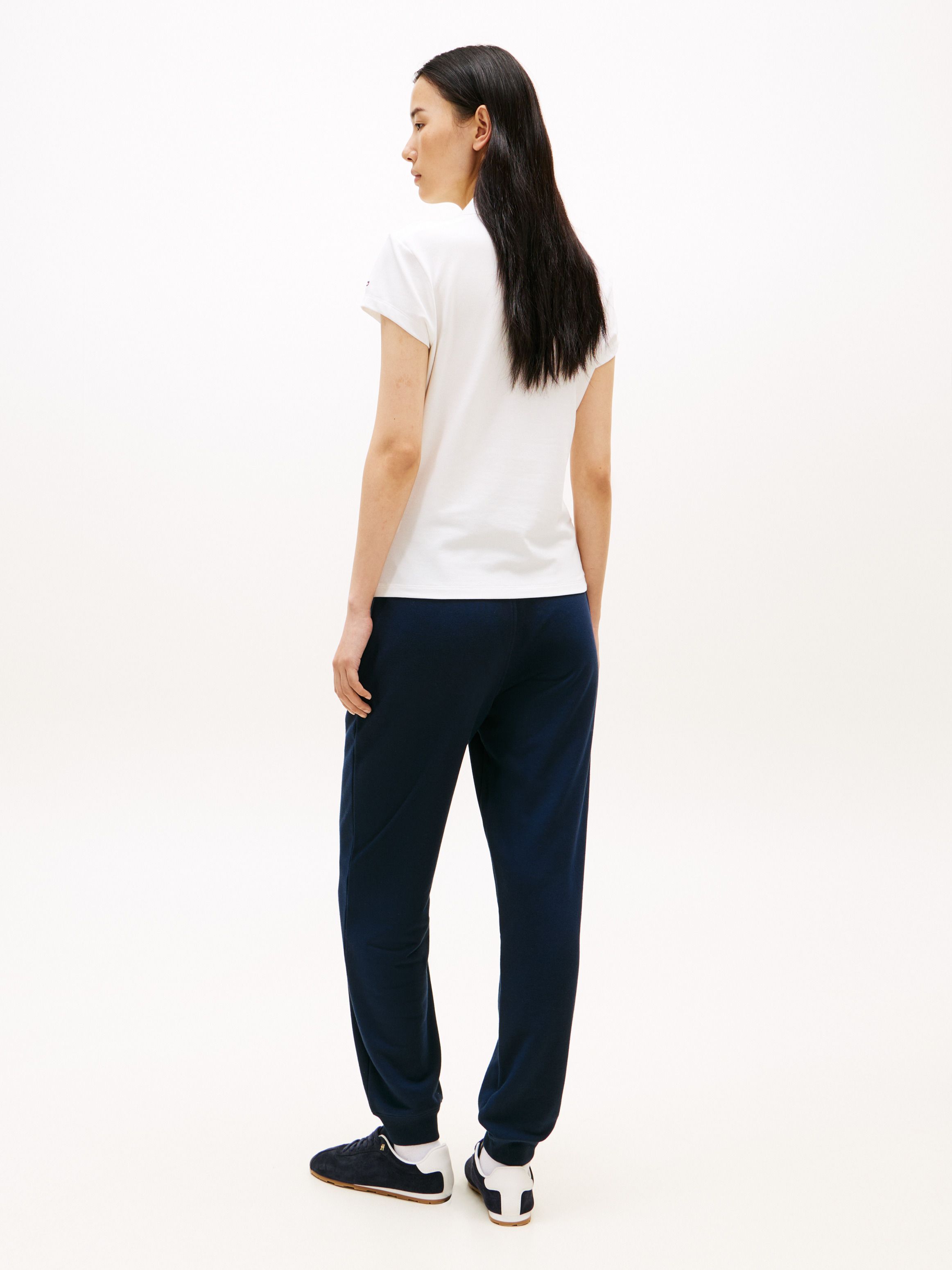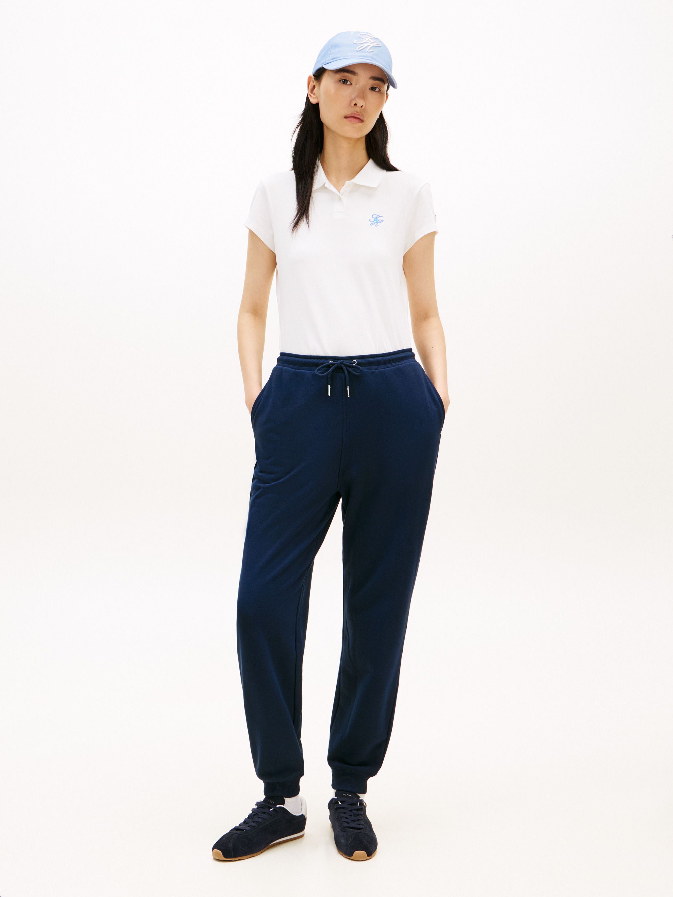• بنطلون رياضي بساق واسعة مطرز بالشعار
