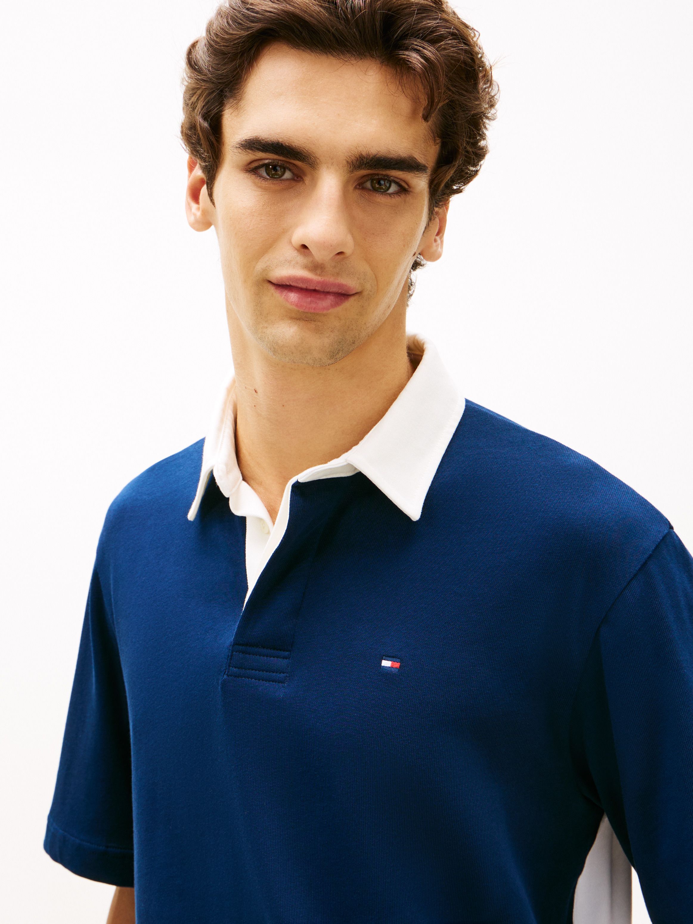 قميص بولو بقصة مريحة من جيرسي قطن خالص، مع ياقة متباينة وعلم بألوان متباينة على الظهر لإطلالة لافتة. أبرز التفاصيل • جيرسي قطن خالص • ياقة بولو متباينة • شريط أزرار مخفي • شريط مميز داخل فتحة الرقبة • علم تومي هيلفيغر بتصميم ألوان متباينة على الظهر • علامة تومي هيلفيغر • تطريز علم تومي هيلفيغر على الصدر القصة والمقاس • قصة مريحة الخامة والعناية • 100% قطن
