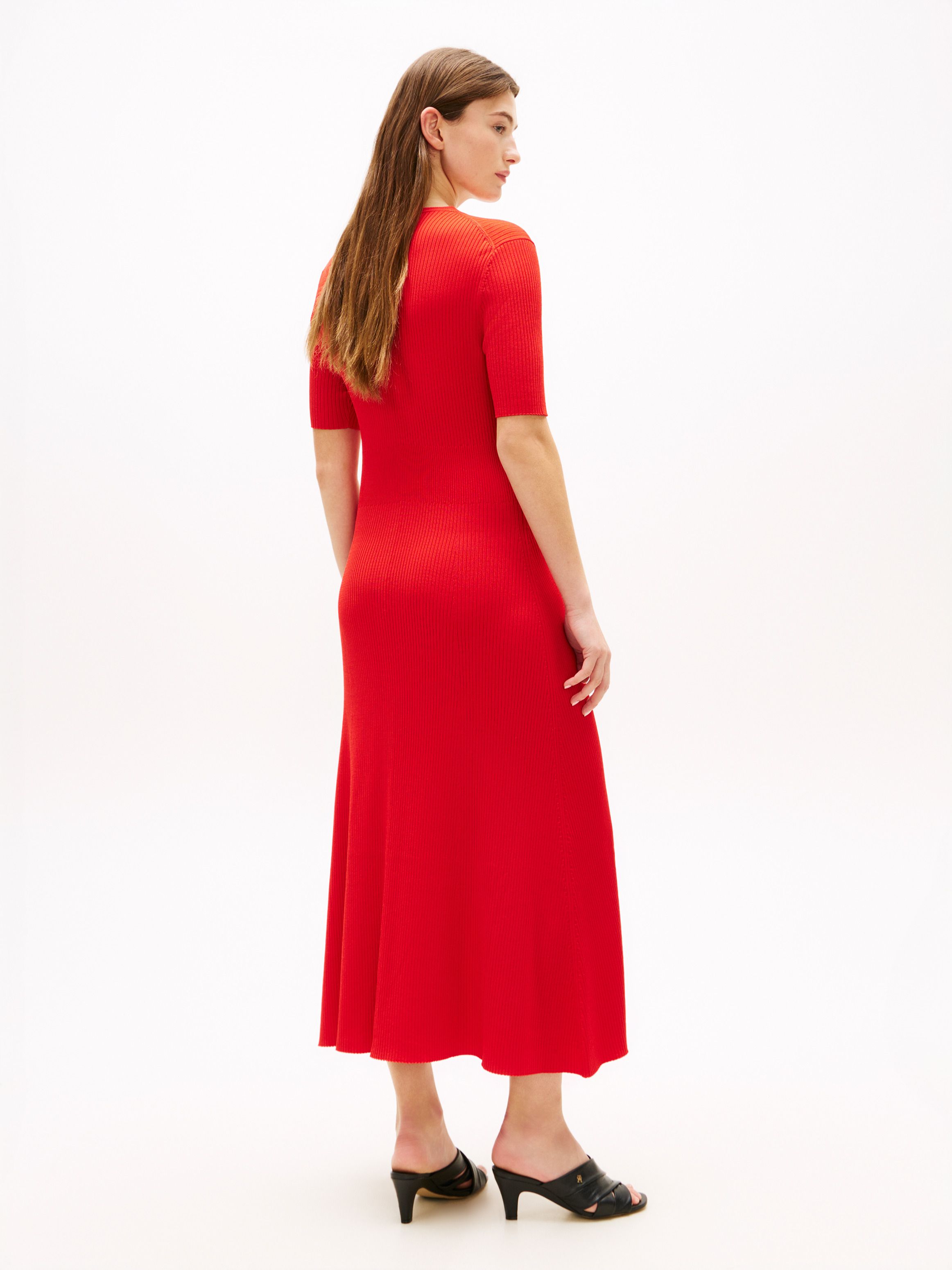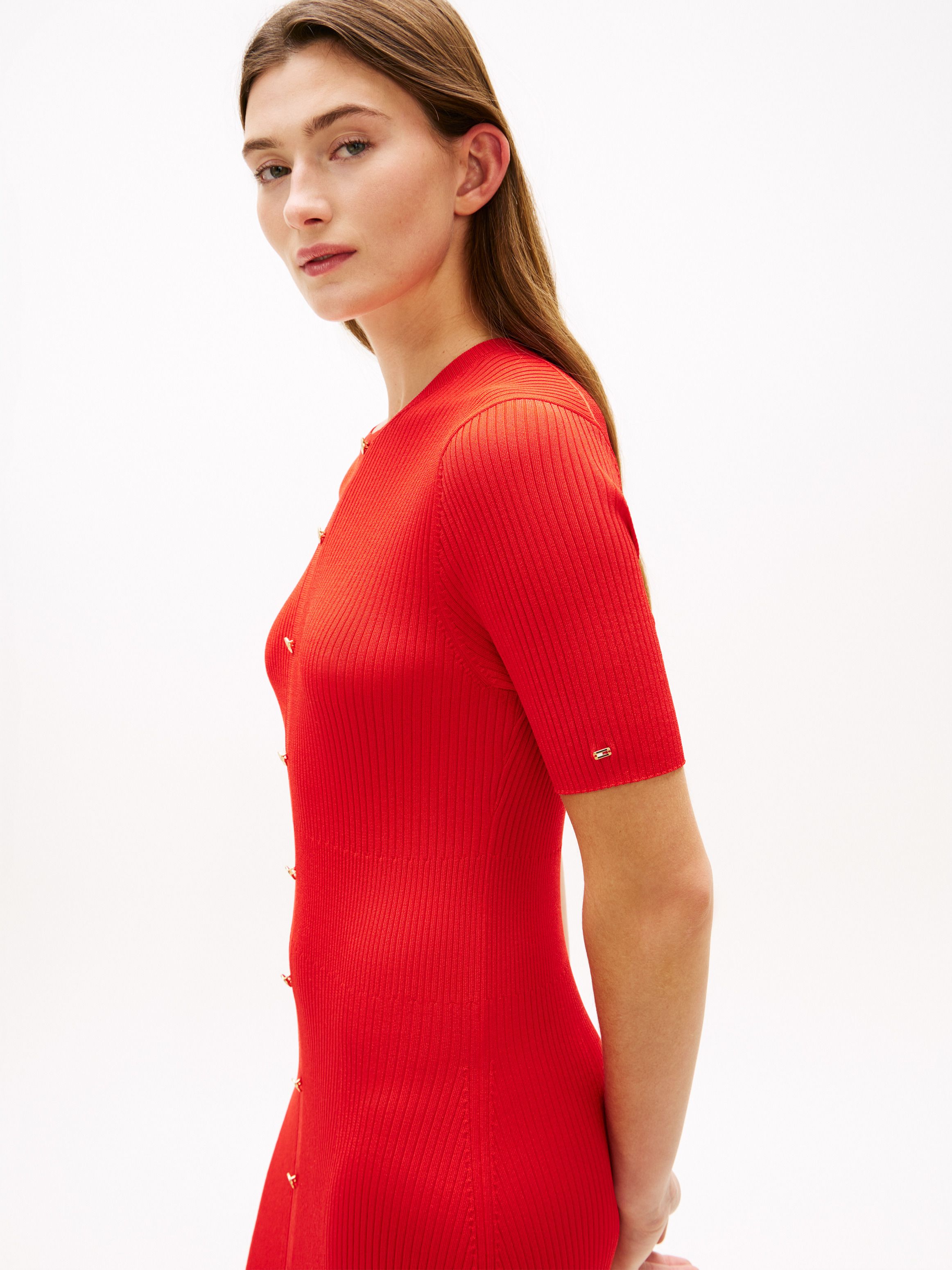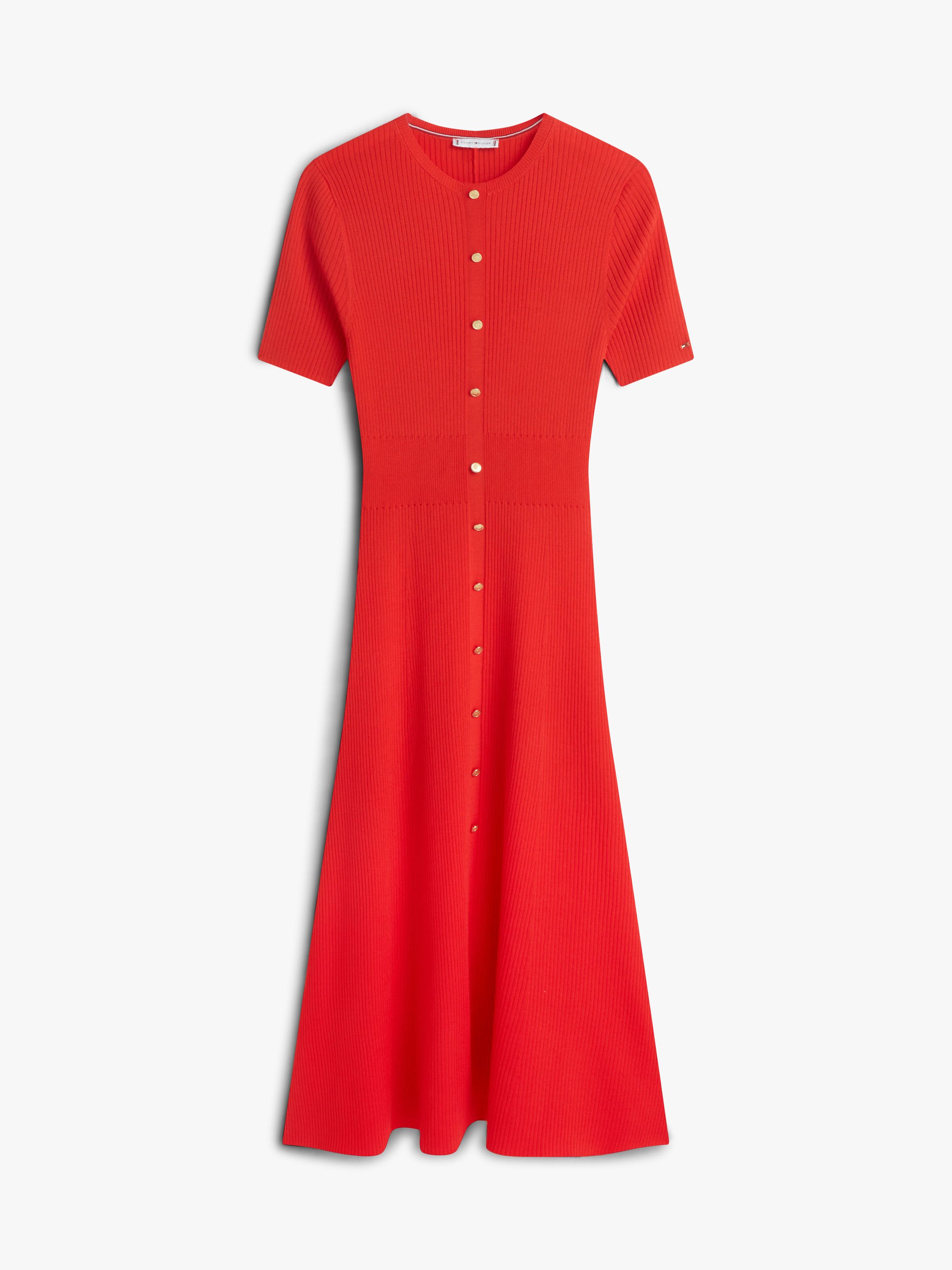 فستان ماكسي مضلع ضيق بأزرار ذهبية كاملة مصنوع من نسيج مضلع مع واجهة كاملة بأزرار بلون ذهبي لإطلالة راقية. أبرز التفاصيل • مزيج فيسكوز • أزرار بلون ذهبي • نسيج مضلع • ياقة دائرية • أزرار كاملة من الأعلى للأسفل • شريط مميز داخل فتحة الرقبة • علامة تومي هيلفيغر • نقش علم تومي هيلفيغر على الأزرار • علم تومي هيلفيغر المعدني على الكفة القصة والمقاس • قصة ضيقة • أكمام قصيرة • طول ماكسي • قصة فيت آند فلير الخامة والعناية • 77% فيسكوز، 23% نايلون