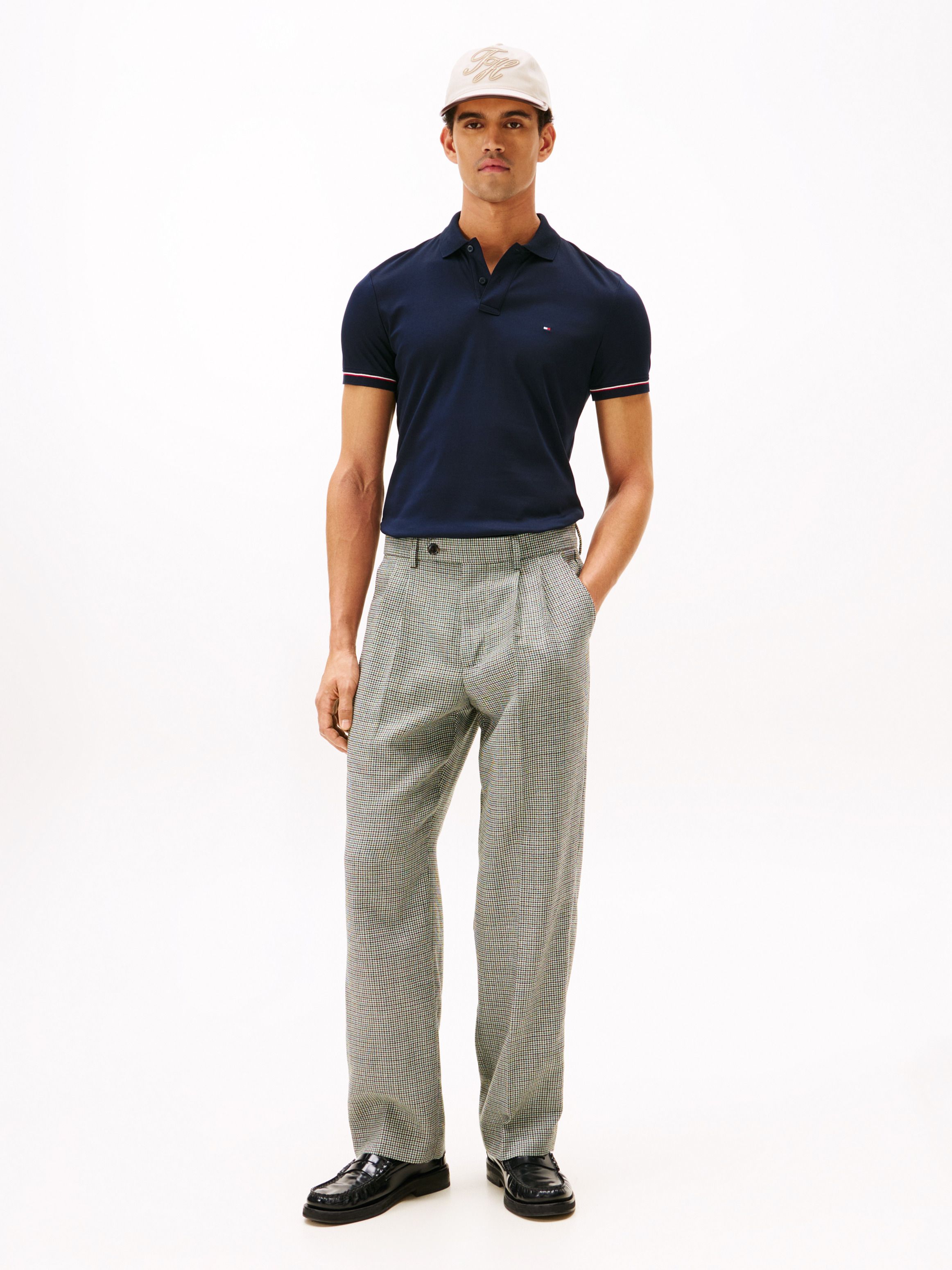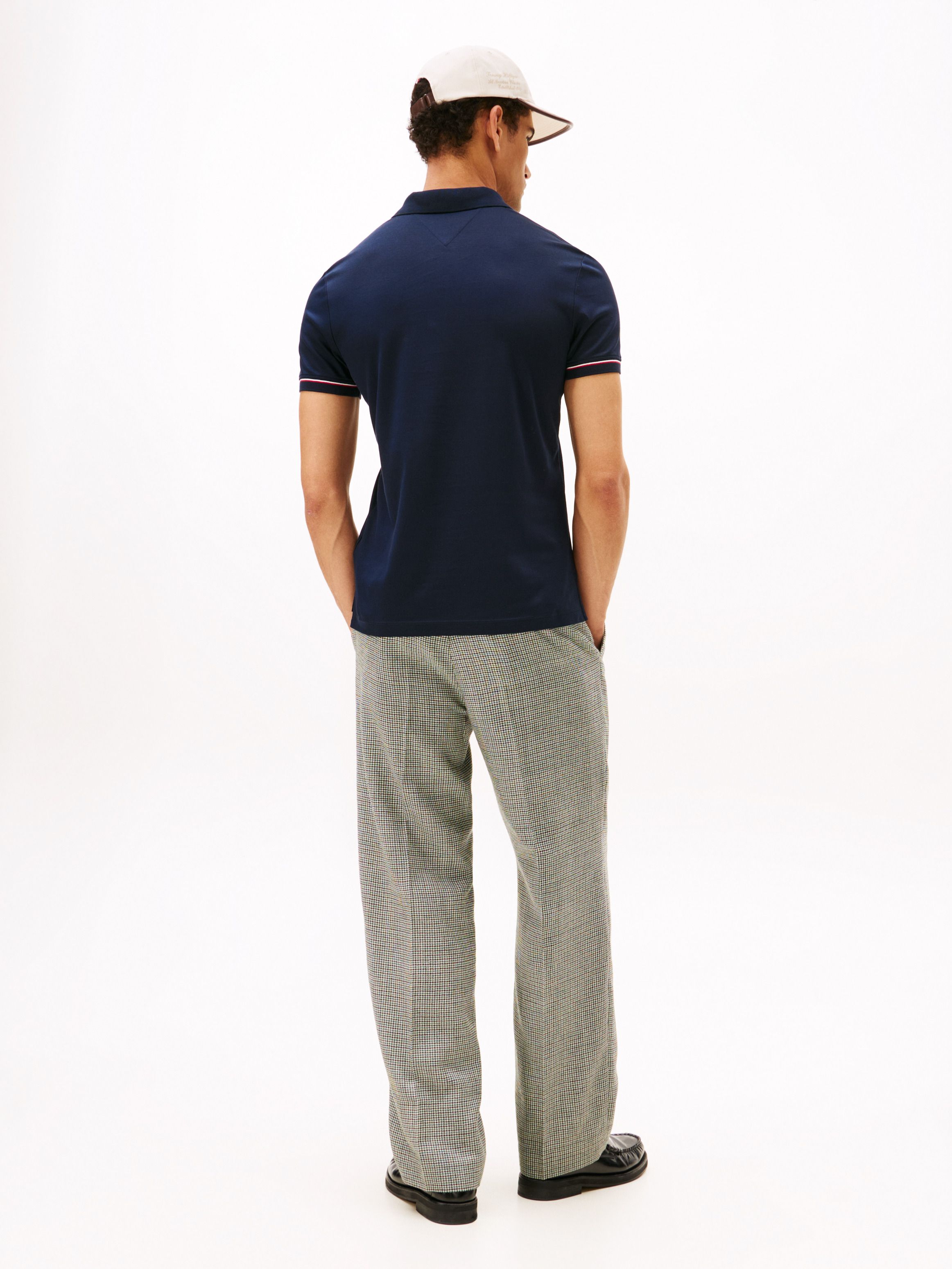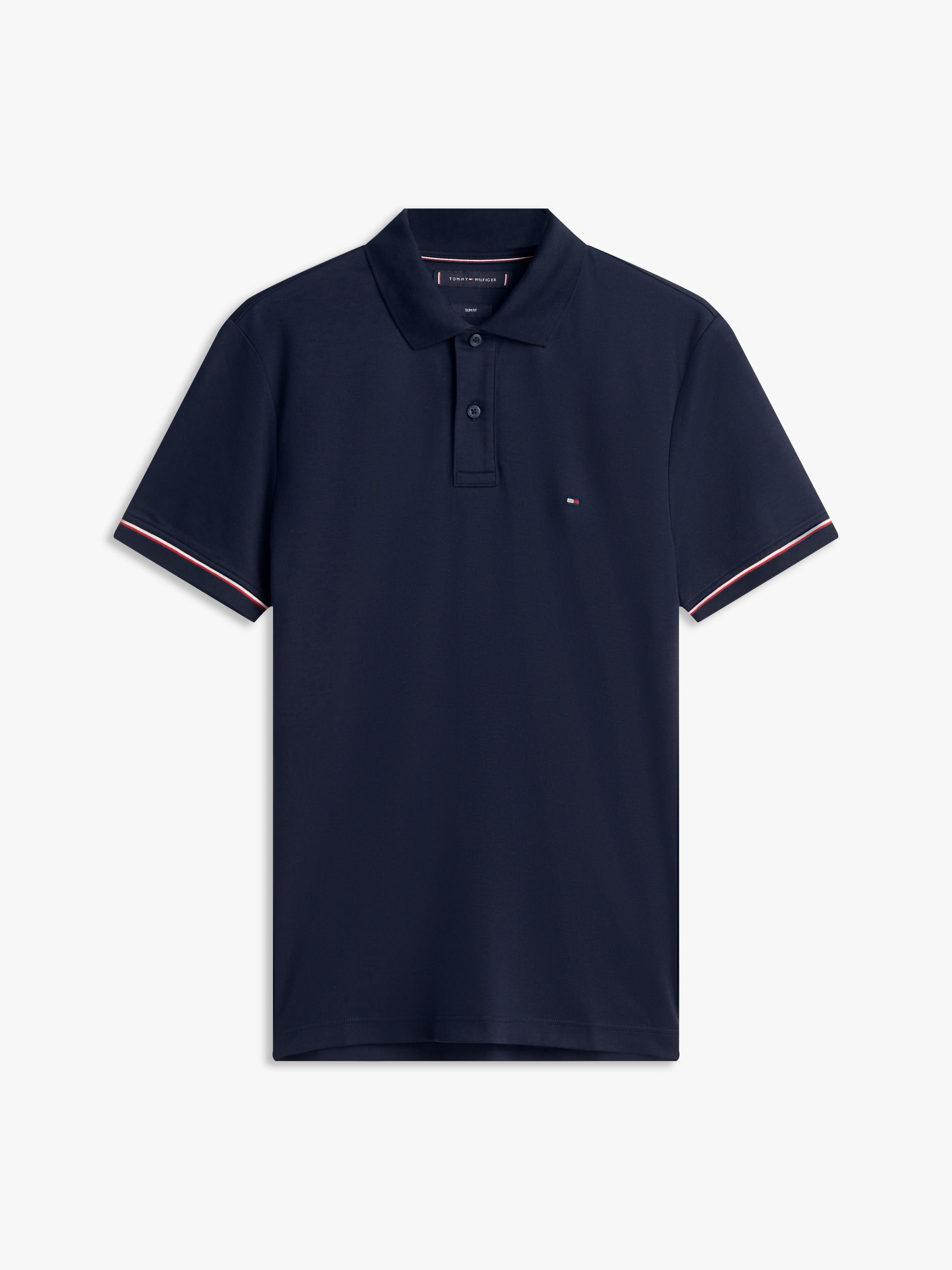 بخطوط نظيفة ولمسة رقي خفيفة، تم تصميم القميص البولو القطني بأكمام قصيرة بحواف حمراء وبيضاء وزرقاء لمظهر عصري بسيط ومجرد.