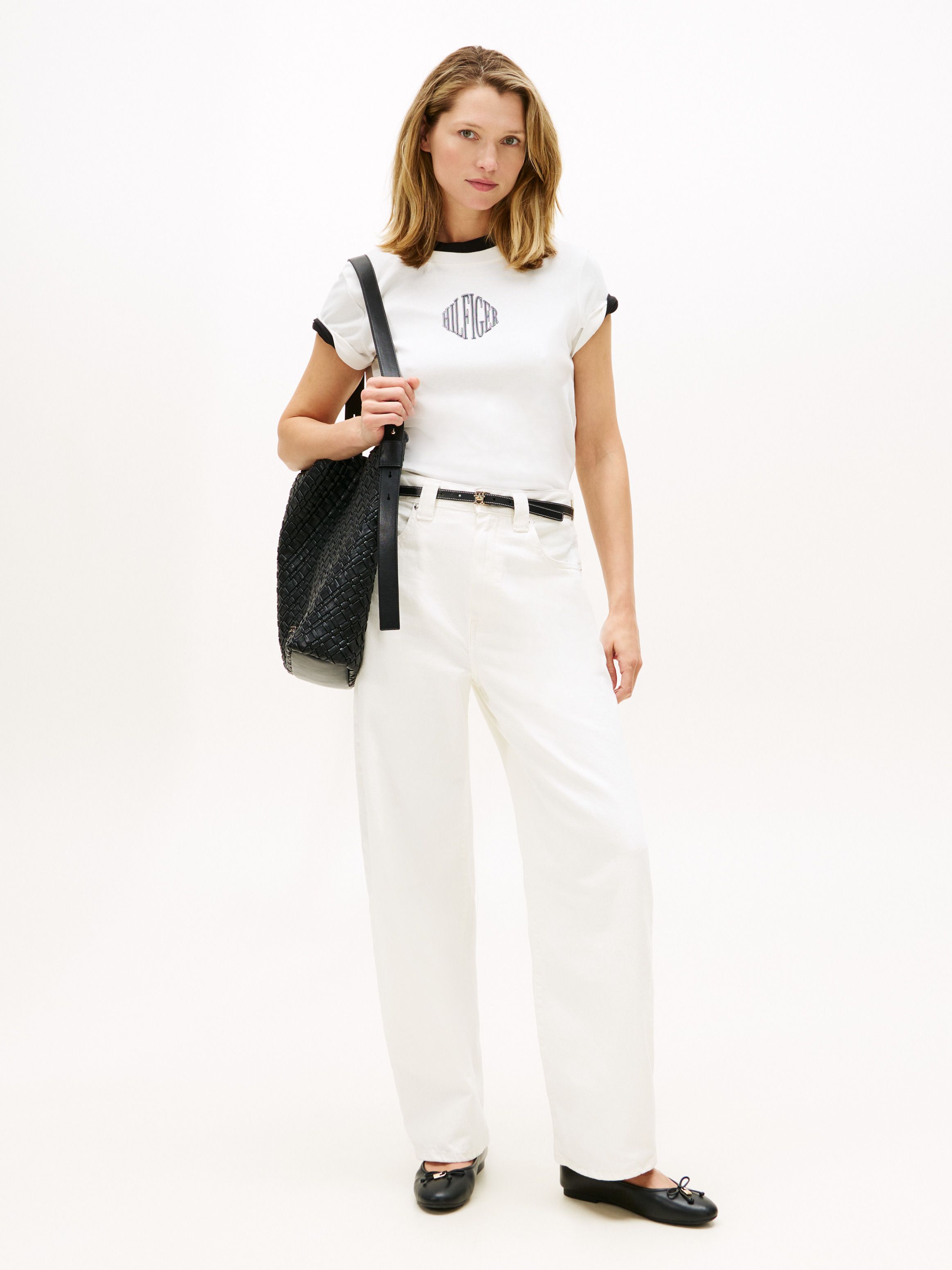 • تيشيرت بقصة مريحة مطرز بشعار TH