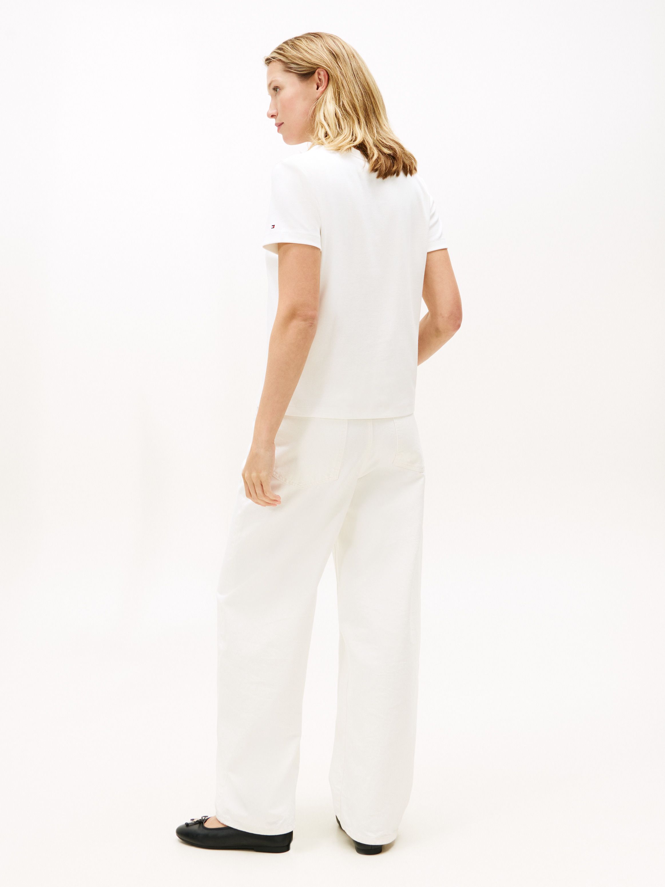 تيشيرت بياقة دائرية يمنح إطلالة رياضية أنيقة بفضل شعار مستوحى من الفارسيتي، فيما تضيف اللمسة الحريرية لمسة فخامة بسيطة ومميزة. أبرز التفاصيل • قطن نقي • لمسة نهائية حريرية • ياقة دائرية • شريط التوقيع داخل الياقة • شعار Tommy Hilfiger على الصدر • علامة Tommy Hilfiger • تطريز علم Tommy Hilfiger على الكم القصة والمقاس • قصّة عادية • العارضة بطول 1.76 م وترتدي مقاس S الخامة والعناية • 100% قطن