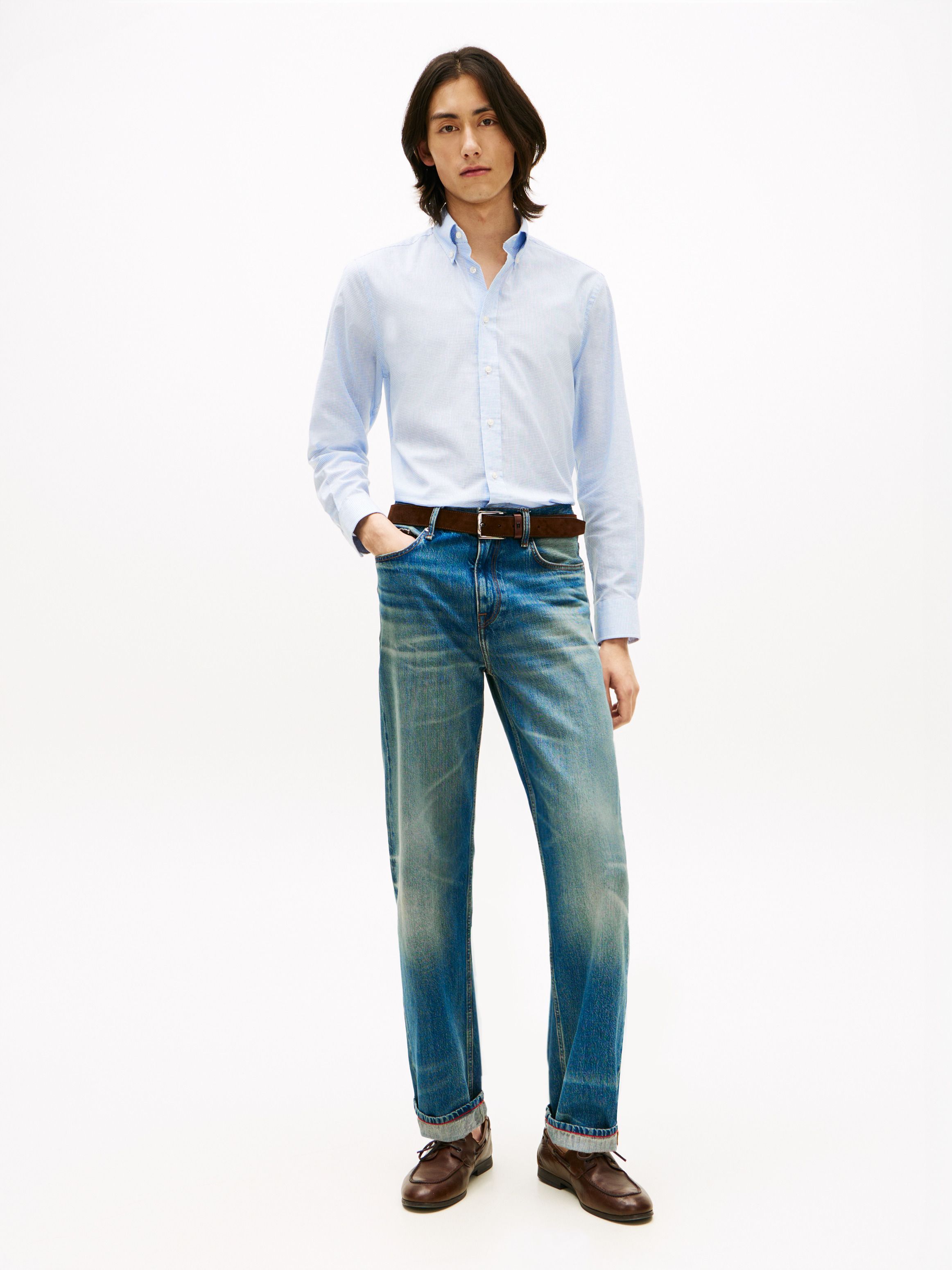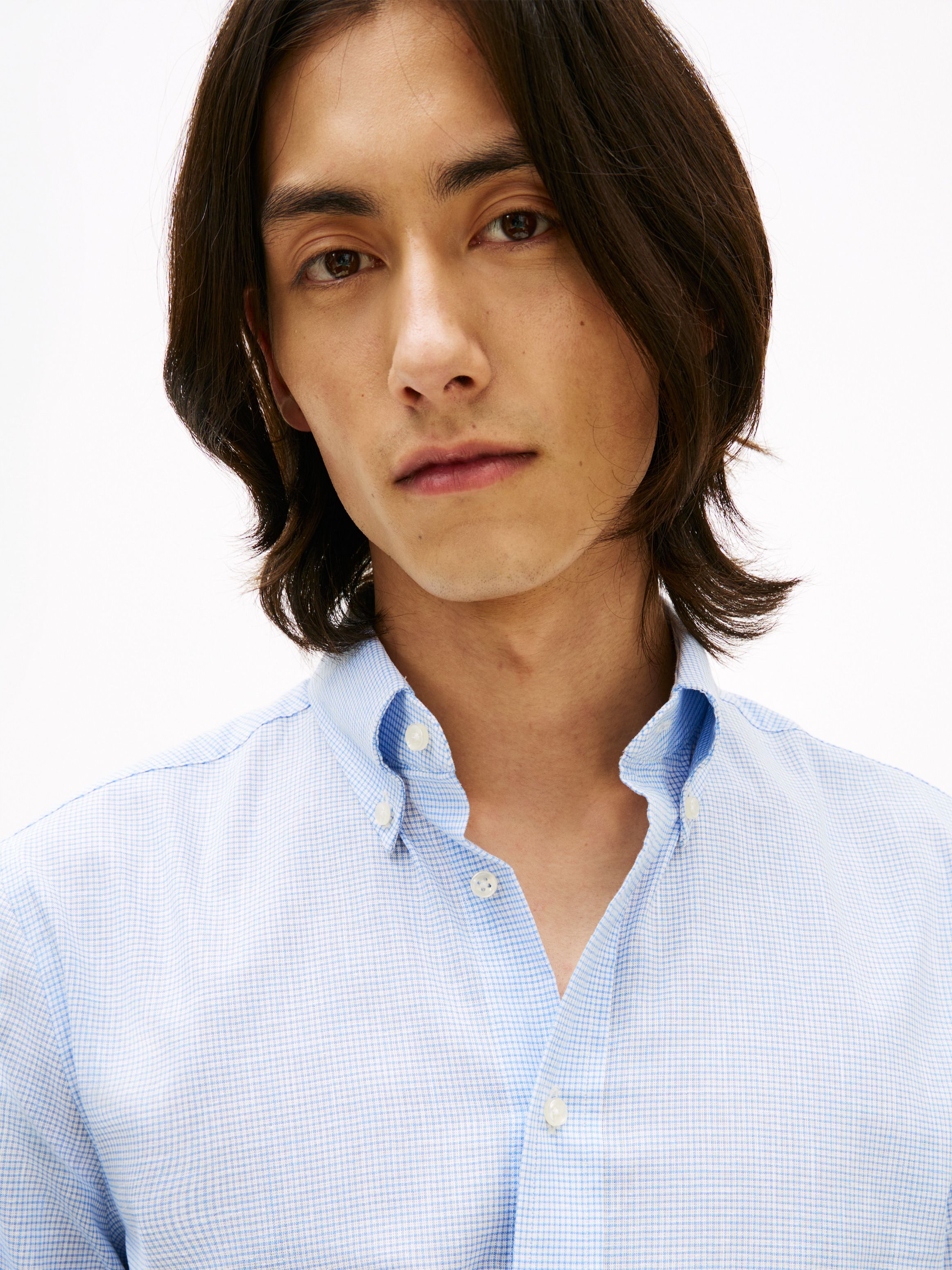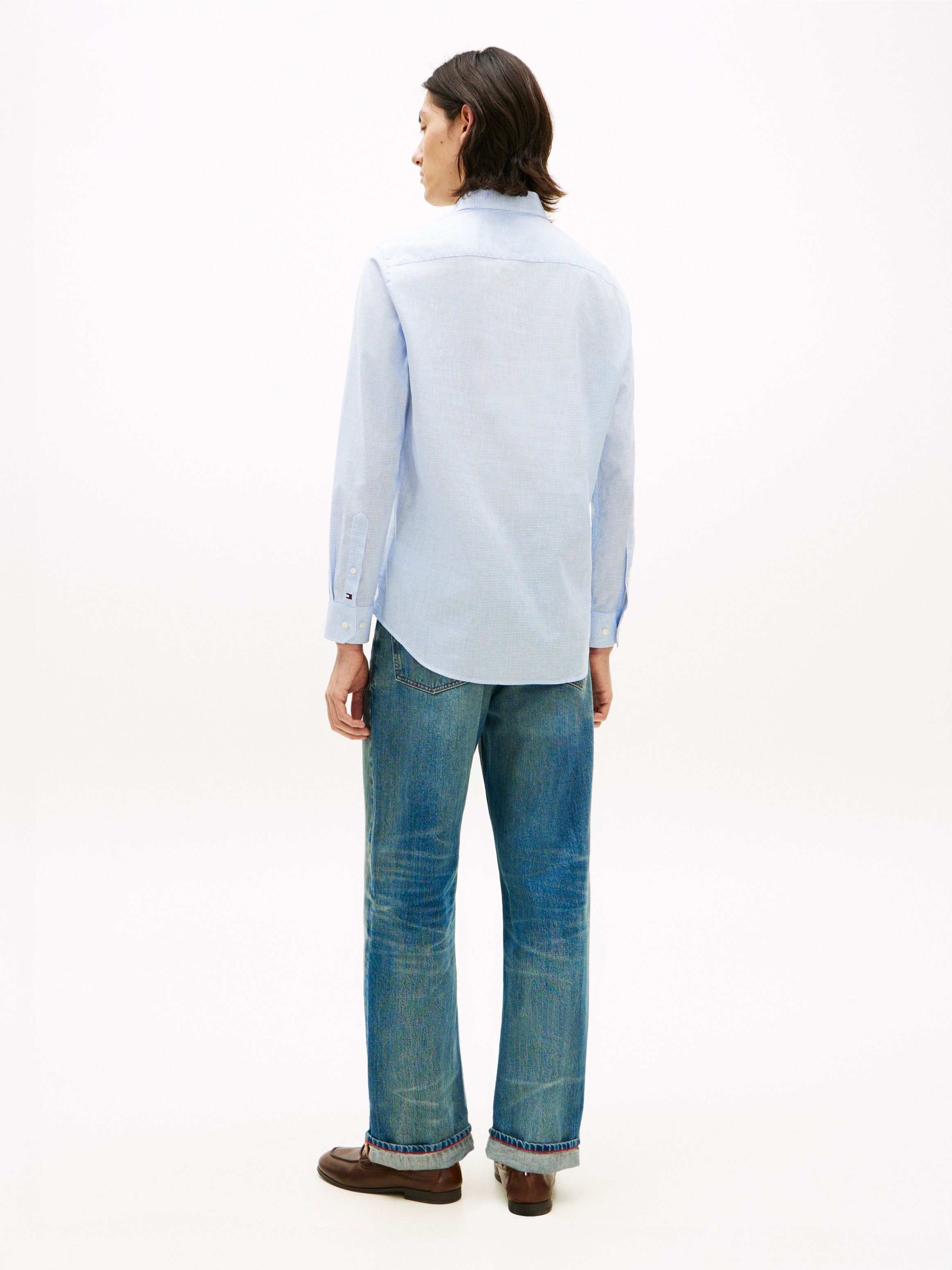 قميص كاروهات بقصة عادية من مزيج القطن والكتان المطاطي، مع تقنية Flex للتمدد أربع جهات لراحة أكبر في الإطلالات الرسمية. أبرز التفاصيل • مزيج قطن وكتان مطاطي • تقنية Flex • نقش كاروهات شبكي (Grid check) يغطي التصميم بالكامل • ياقة بأزرار (Button-down) • أكمام بأساور • ذيل قميص منحني (Shirttail hem) • علامة تومي هيلفيغر القصة والمقاس • قصة عادية الخامة والعناية • 85% قطن، 13% كتان، 2% إيلاستان